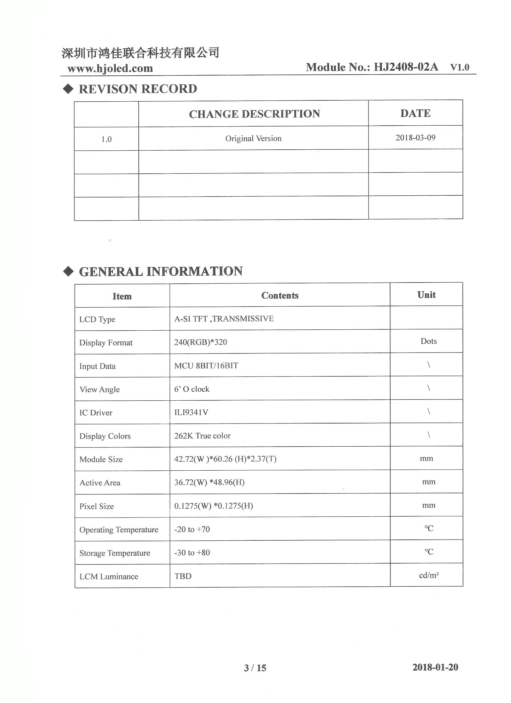 Resolution: 240 × (RGB) × three hundred and twenty