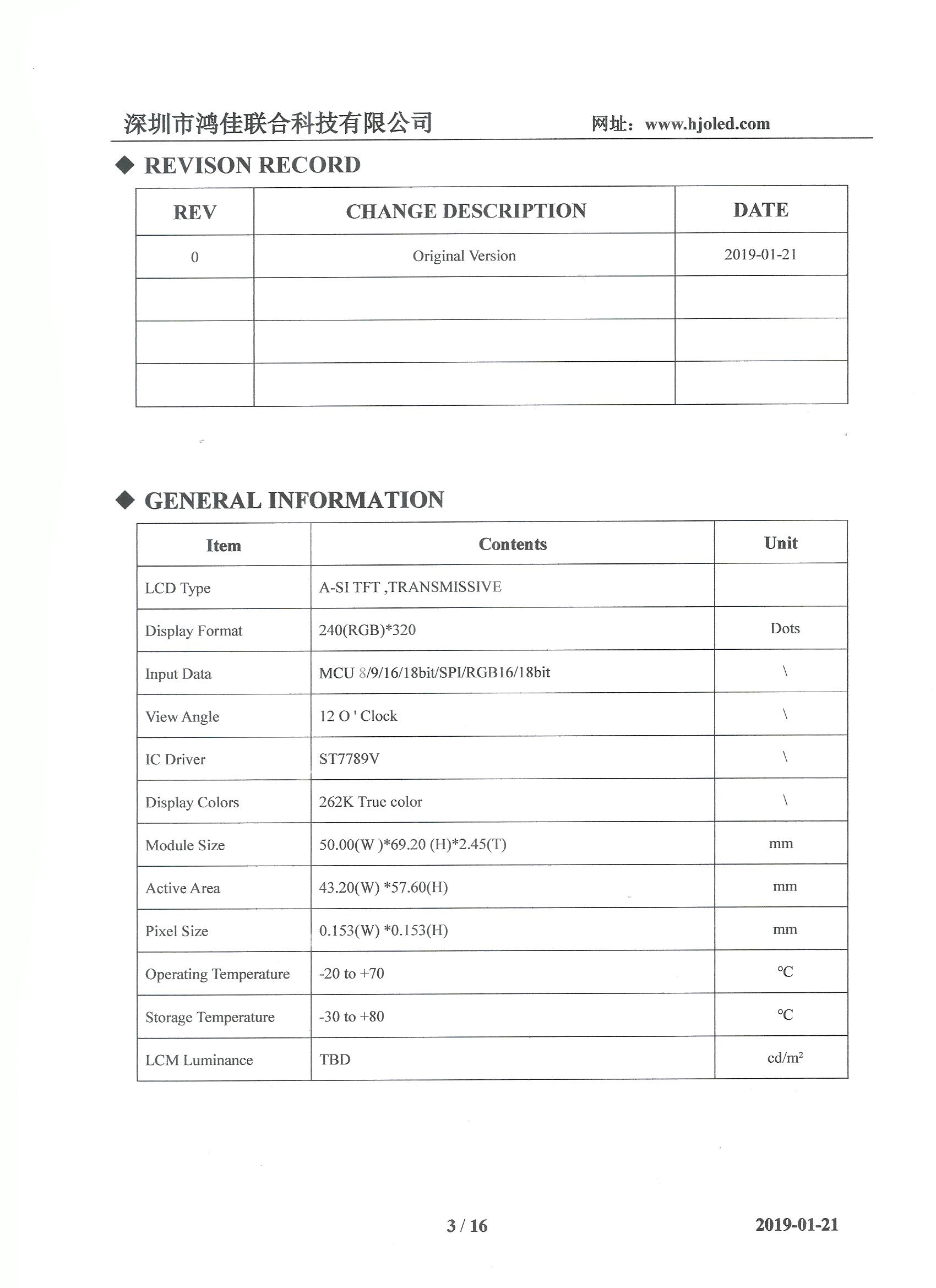 Resolution: 240 × (RGB) × three hundred and twenty