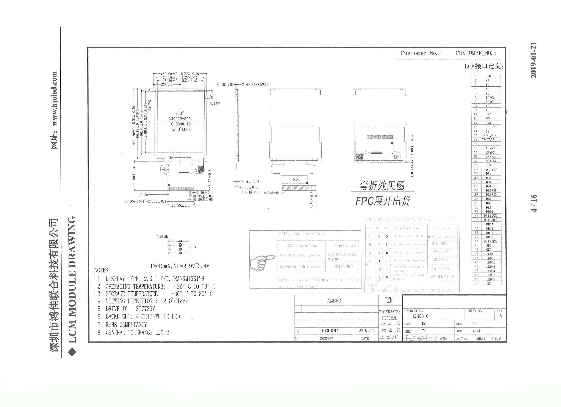 Product size: 2.8-inch TFT LCD (standard interface)