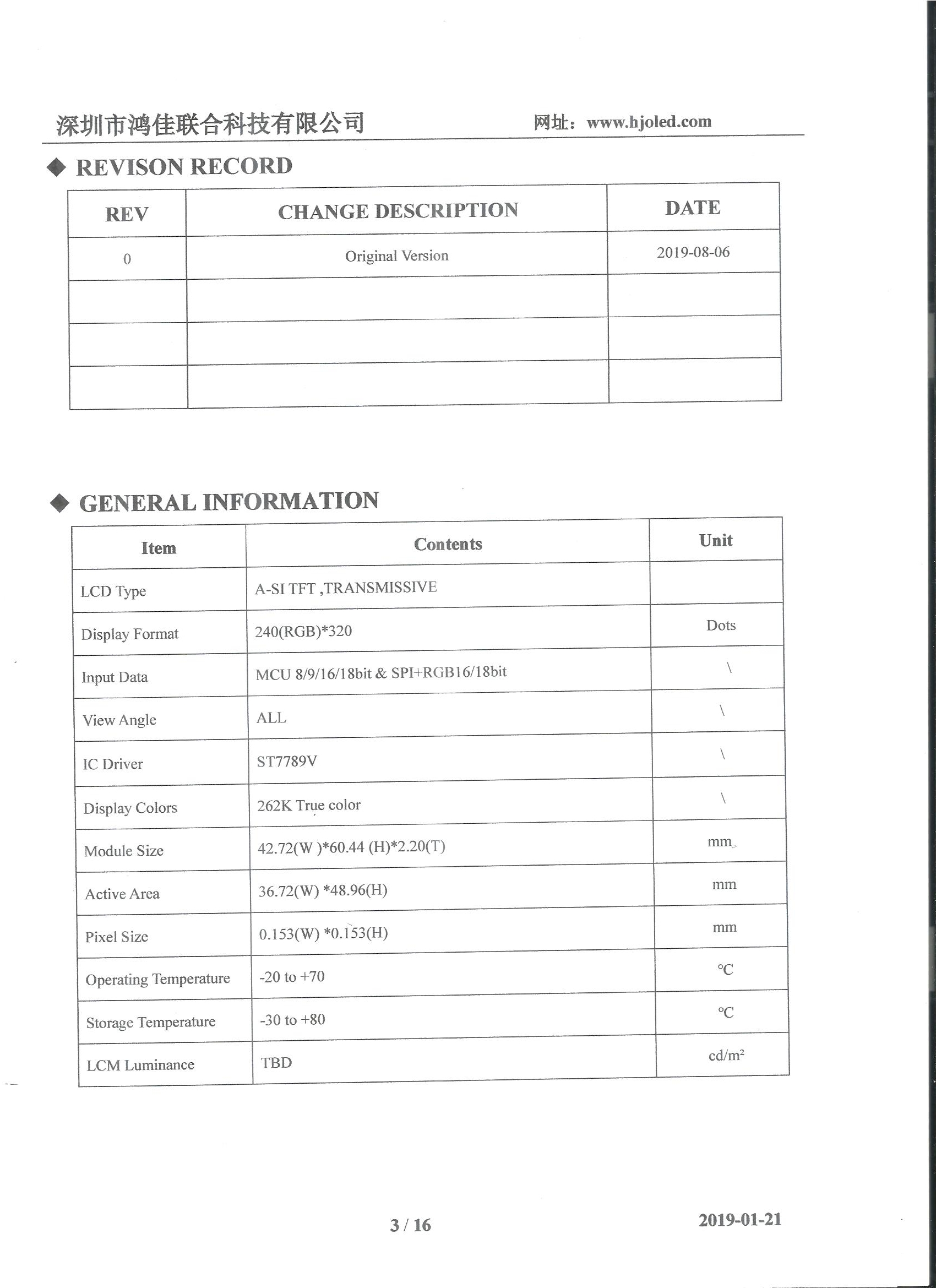 Resolution: 240 × (RGB) × three hundred and twenty