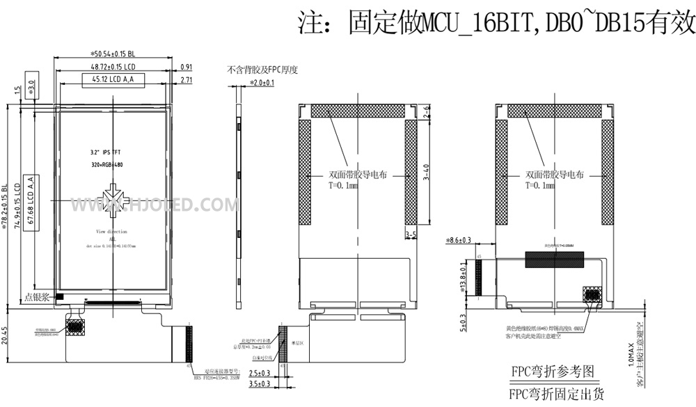 3.2寸TFT LCD,3.2寸IPS 320*480分辨率ST7796接口MCU陽光下可讀