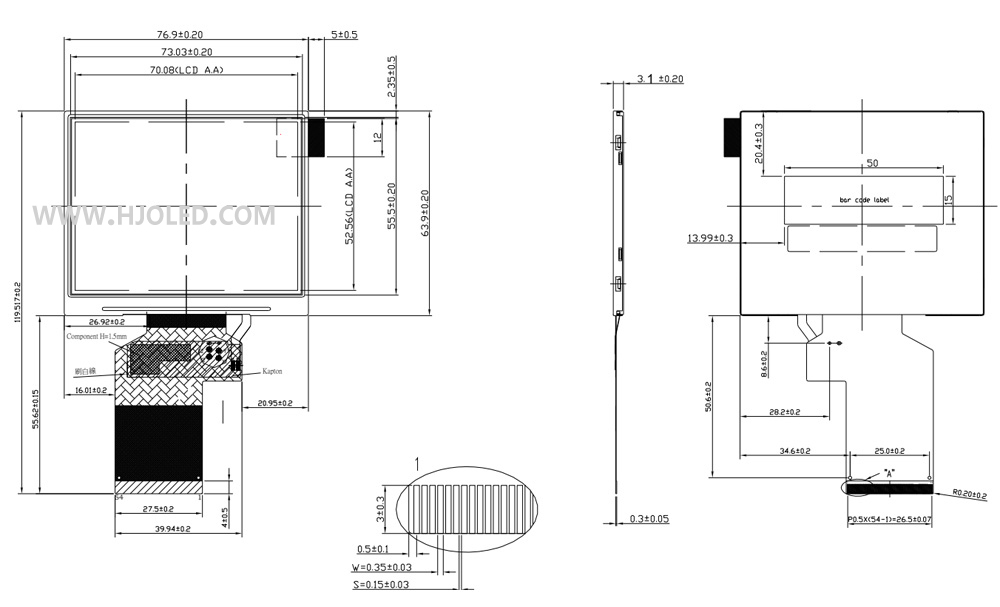產品簡介:HJ3501-01,3.5寸橫屏,320*240分辨率接口RGB 54PIN, 可應用于工業設備、手持檢測儀器、美容設備、智能家居、消費電子等產品上,我們公司可以按客戶的要求提供定制。