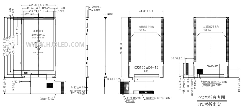 產品簡介:HJ3002-03,3.0寸IPS屏16:9,240*400分辨率, 可應用于工業設備、手持檢測儀器、美容設備、智能家居、消費電子等產品上,我們公司可以按客戶的要求提供定制。