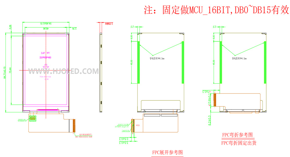 3.5寸TFT LCD 寬視角 320*480分辨率ILI9488接口MCU 16BIT,高亮1000流明