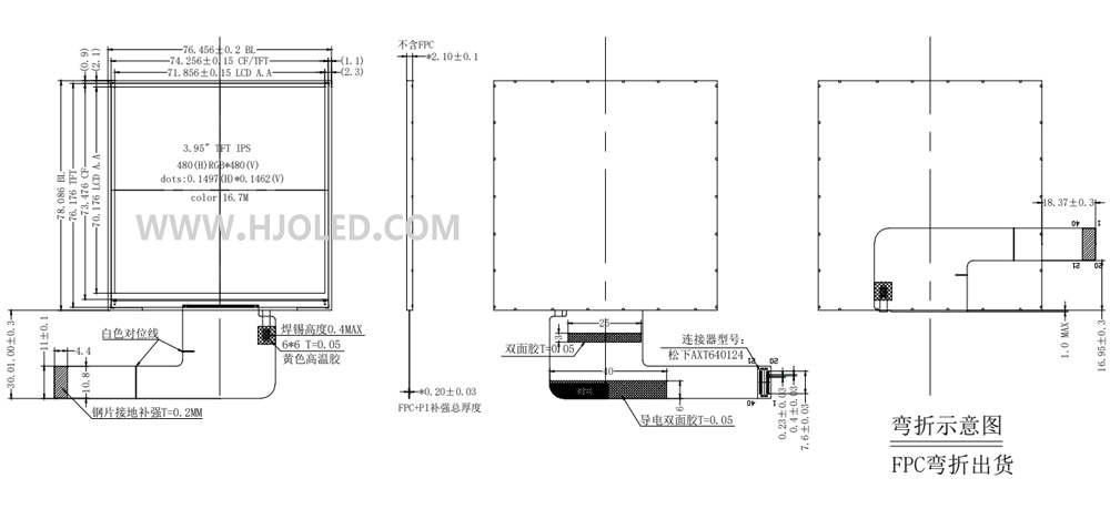 3.95寸方形TFT屏,3.95寸方形TFT LCD IPS 480*480分辨率,ST7701S,RGB接口40PIN