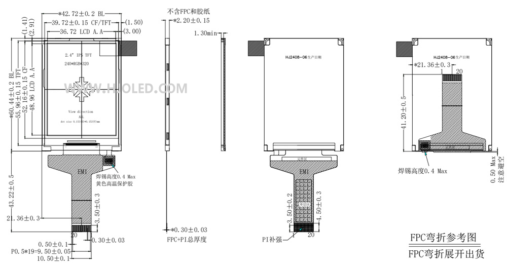 產品簡介:HJ2408-09,240*320分辨率MIPI接口20PIN,0.5間距,可應用于工業設備、血氧儀、手持檢測儀器、美容設備、智能家居、消費電子等產品上,我們公司可以按客戶的要求提供定制。