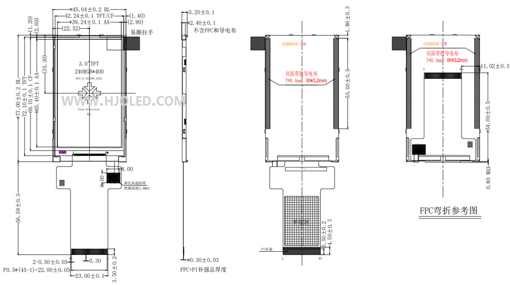 3.0寸TFT LCD IPS 240*400分辨率MCU 16BIT,ST7793,45PIN