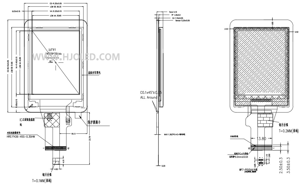 產品簡介:HJ2080-02A,2.0寸電容觸摸總成,支持SPI +RGB_16BIT/18BIT/MCU8BIT/MCU16BIT,2點觸控,可應用于醫療設備、血氧儀、手持檢測儀器、美容設備、智能家居、消費電子等產品上,我們公司可以按客戶的要求提供定制。