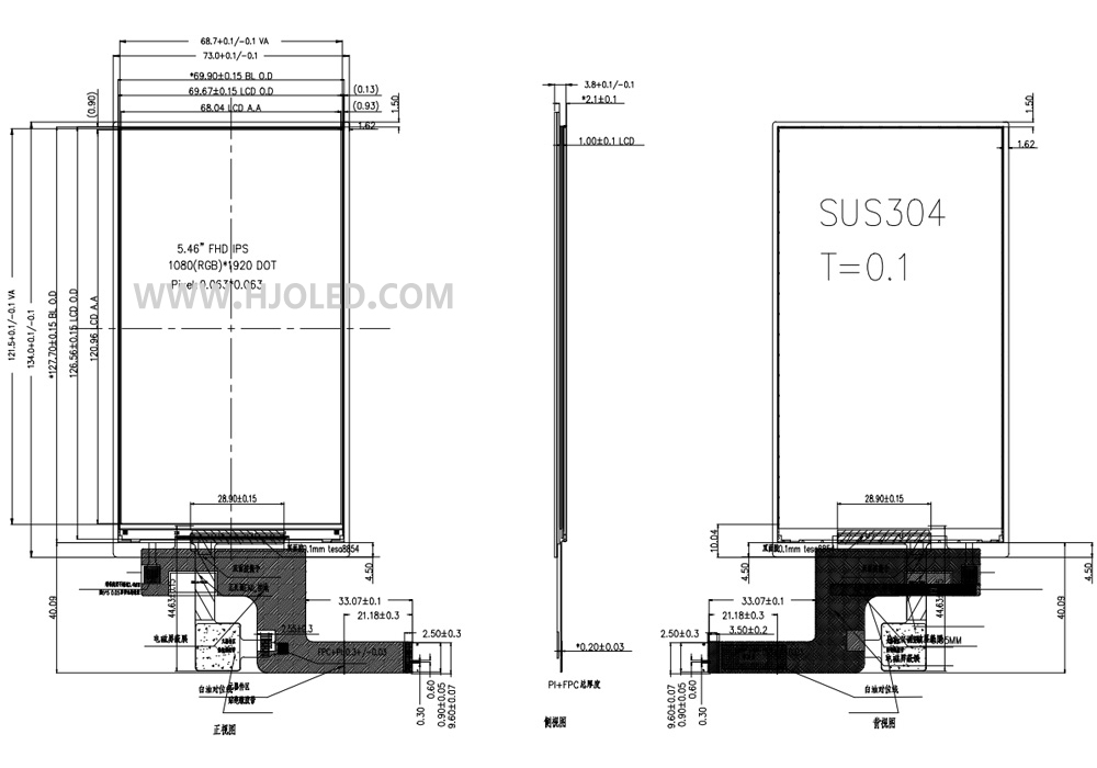 5.5寸電容觸摸屏,5.5寸觸摸屏總成IPS 1080*1920分辨率ILI7807D,MIPI 4lane,GT911多點觸控
