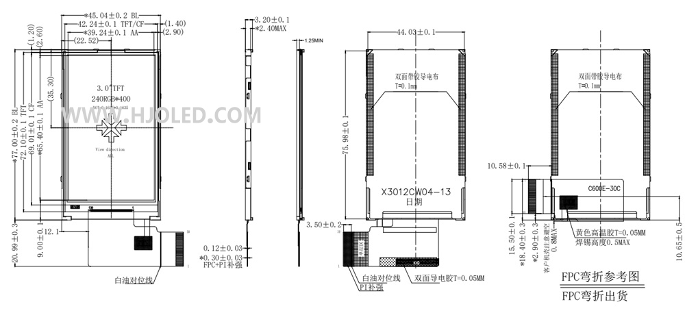 產品簡介:HJ3002-03,TRANSFLECTIVE,低功耗,240*400 可應用于工業設備、手持檢測儀器、戶外設備、智能家居、戶外消費電子等產品上,我們公司可以按客戶的要求提供定制。