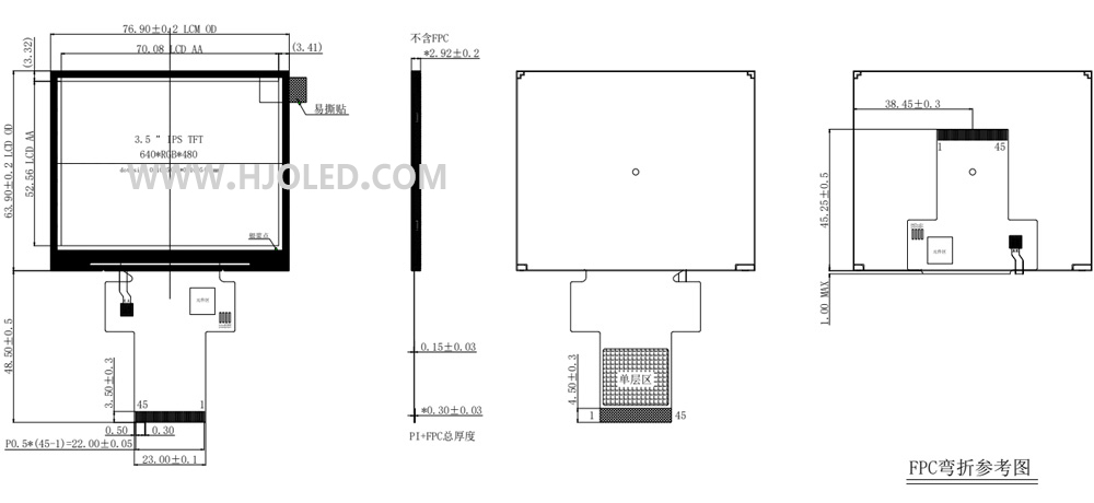 3.5寸TFT橫屏,3.5寸IPS橫屏640*480分辨率NV3052C接口RGB 40PIN