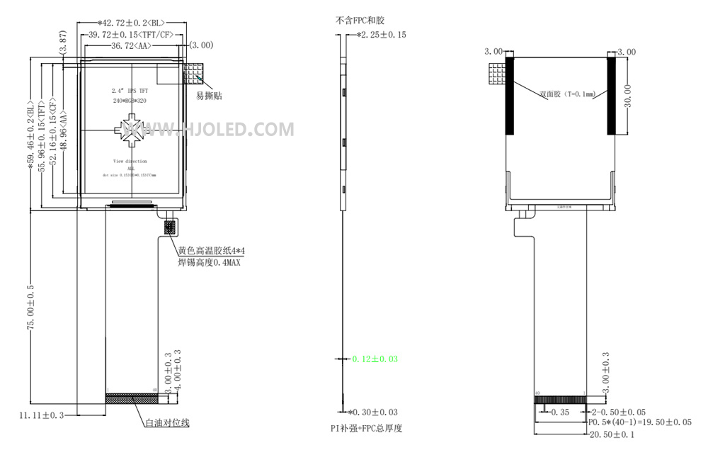 2.4寸TFT LCD模組IPS,標準40PIN,MCU & SPI+RGB窄邊框