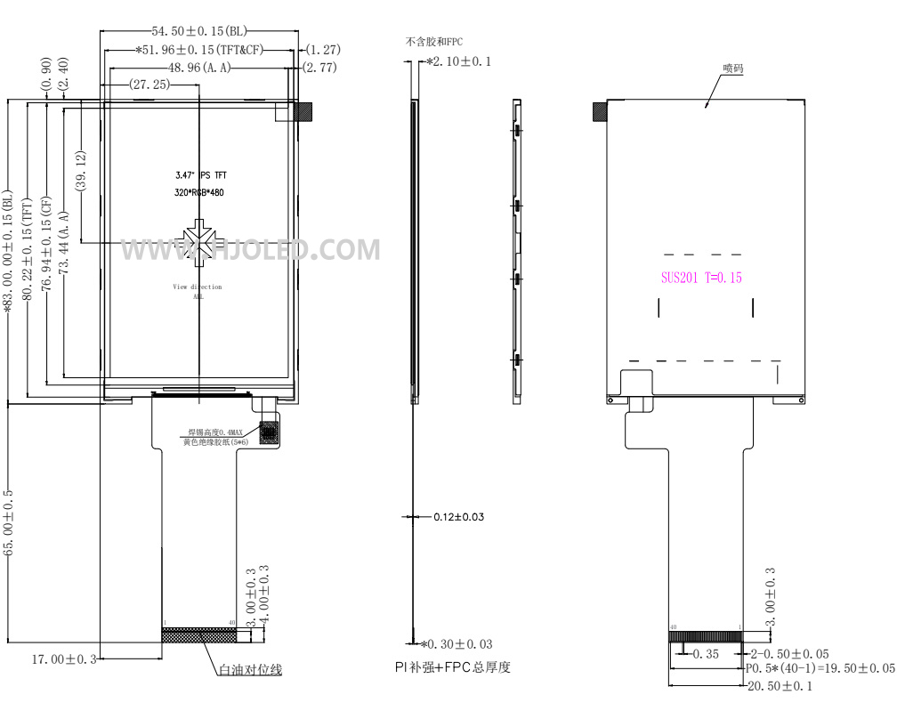 3.5寸TFT LCD 3.5寸IPS 320*480分辨率ST7796接口40PIN SPI/RGB