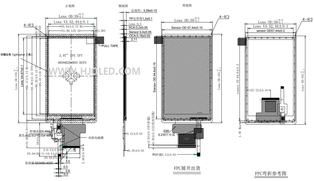 3.97寸觸摸屏LCD,3.97寸觸摸屏總成IPS 480*800 高分辨率ST7701S多點觸控
