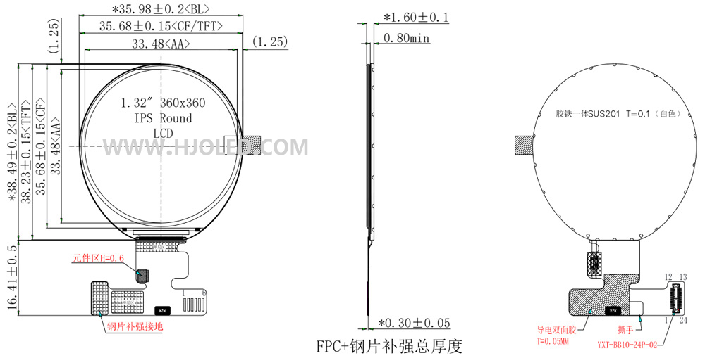 1.32寸圓形TFT屏,1.3寸圓形LCD屏幕 高分辨率360*360,GC9C01接口QSPI