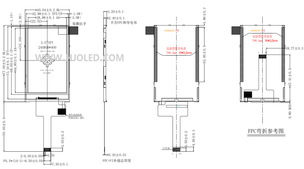 3.0寸半透半反TFT LCD,3.0寸半透液晶屏 TRANSFLECTIVE 陽光下可視 240*400 低功耗SPI