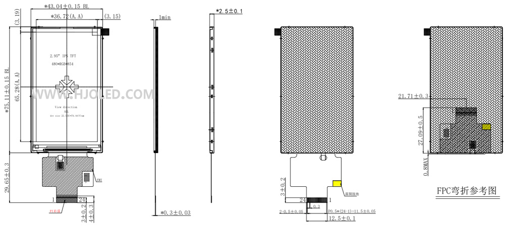 3.0寸TFT LCD,3.0寸 IPS 480*854分辨率ST7701S可帶觸摸屏總成MIPI