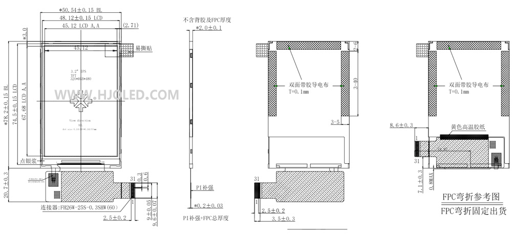 3.2寸TFT LCD 3.2寸IPS屏 320*480分辨率ST7796接口MIPI可帶觸摸屏