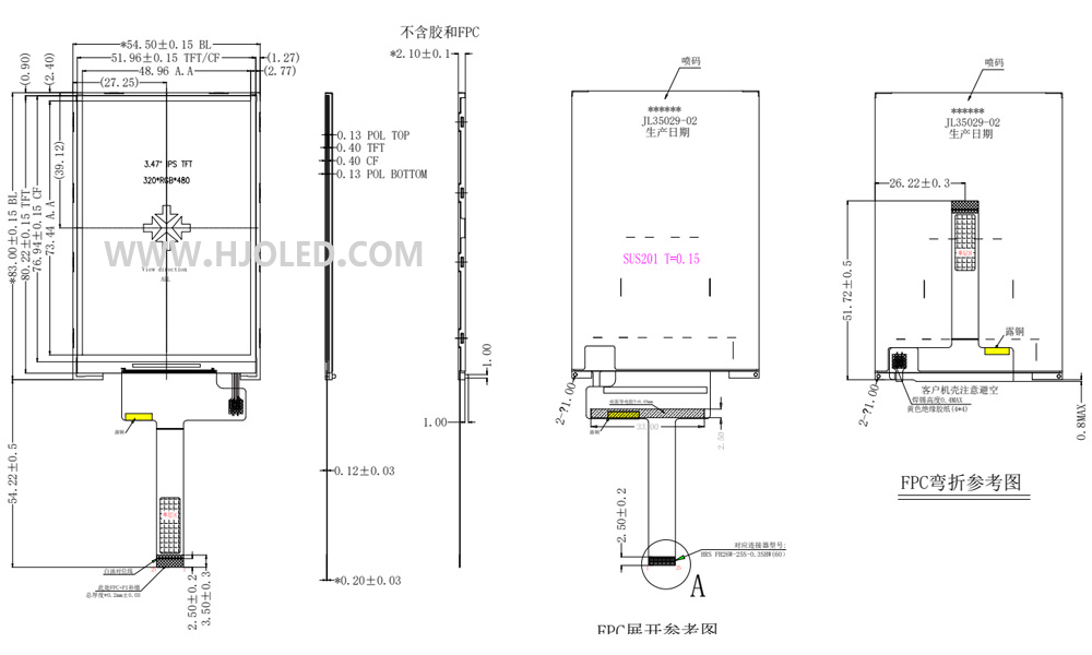 產品簡介:HJ3508-08,3.5寸IPS豎屏,320*480分辨率ST7796接口MIPI, 可應用于工業設備、手持檢測儀器、美容設備、智能家居、消費電子等產品上,我們公司可以按客戶的要求提供定制。