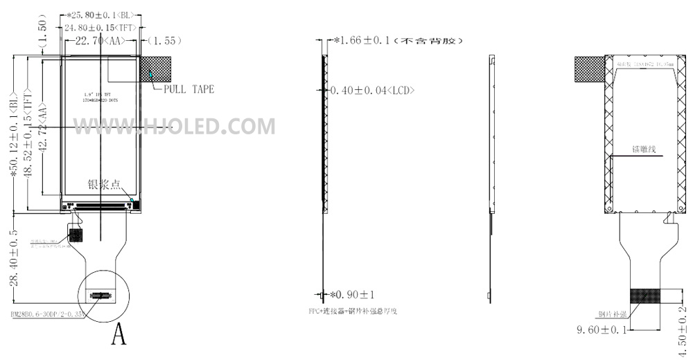 1.9寸LCD長條屏,1.9寸TFT長條屏,ST7789,接口MCU/SPI,30PIN