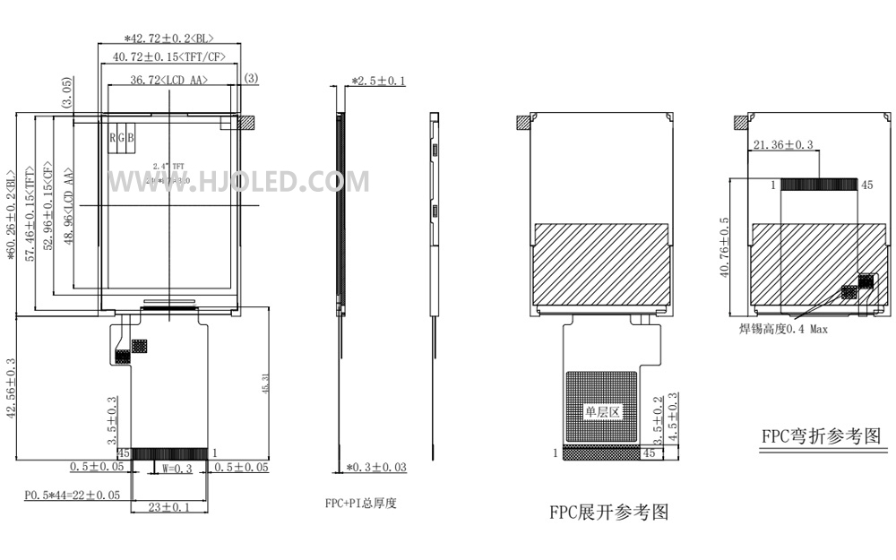 2.4寸半反半透TFT LCD,2.4寸半透液晶屏 TRANSFLECTIVE 陽光下可視 240*320 低功耗45PIN