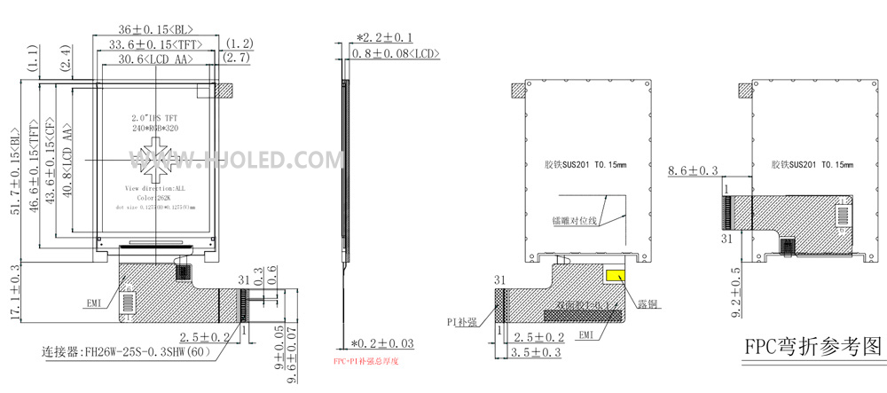 2.0寸TFT LCD模組,MIPI接口ST7785,31PIN可以帶電容觸摸屏