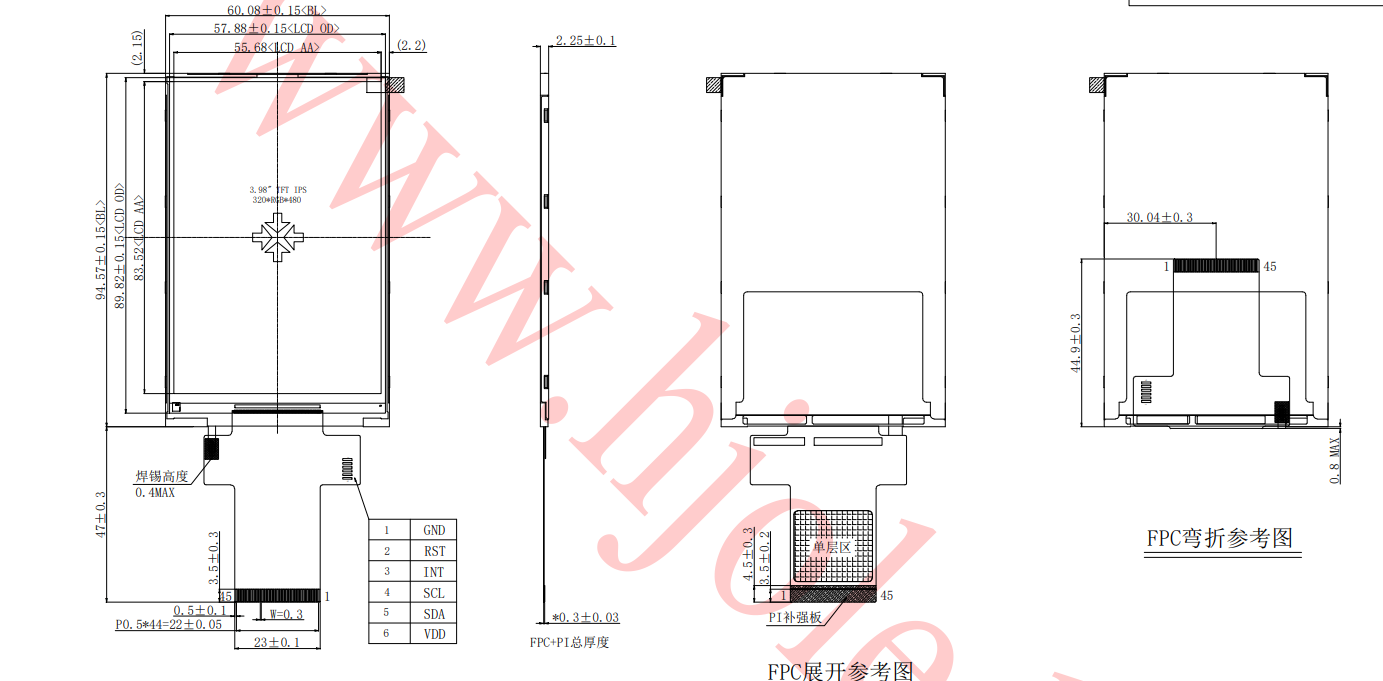 產品簡介:HJ3980-01是一款3.98寸lcd屏IPS, 320*480分辨率接口SPI/MCU/RGB, 3.98寸IPS顯示模組可應用于工業設備、手持檢測儀器、美容設備、智能家居、消費電子等產品上,3.98寸TFT屏我們公司可以按客戶的要求提供定制。
