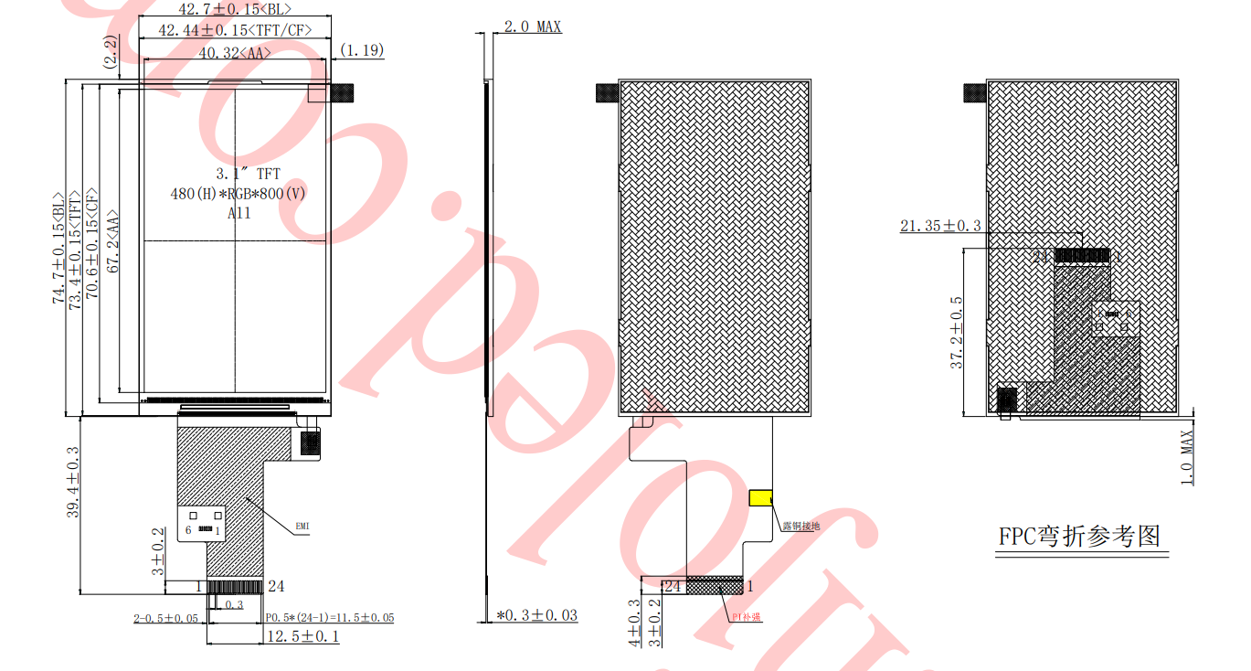 3.1寸液晶屏TFT LCD IPS 480*800分辨率ST7701S高對比度,MIPI帶觸摸接口