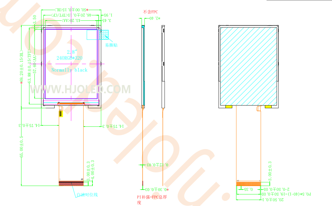 2.8寸半反半透液晶屏 戶外陽光下可視低功耗,標準40PIN