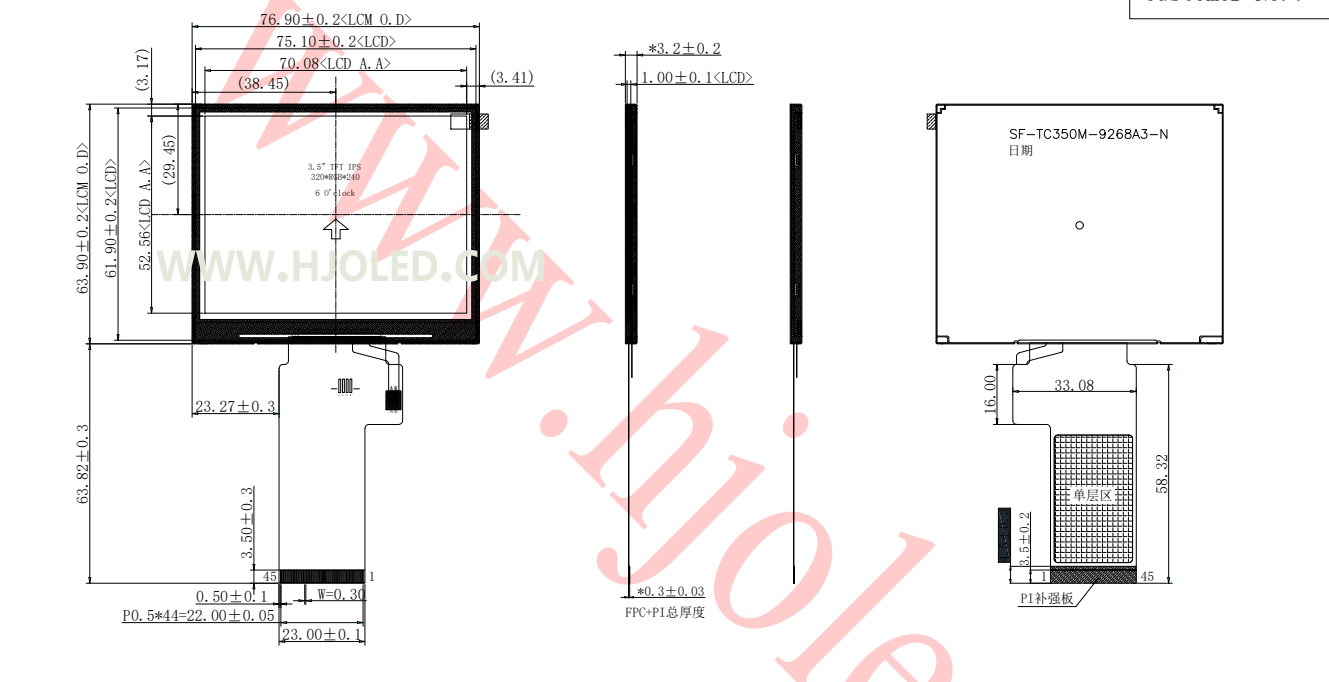 產品簡介:HJ3503-01是一款3.5寸TFT橫屏 320*240分辨率,標準45PIN插接,支持SPI/MCU/RGB接口,驅動IC是ST7796,是市場難得的能支持SPI和MCU接口的3.5寸橫屏。