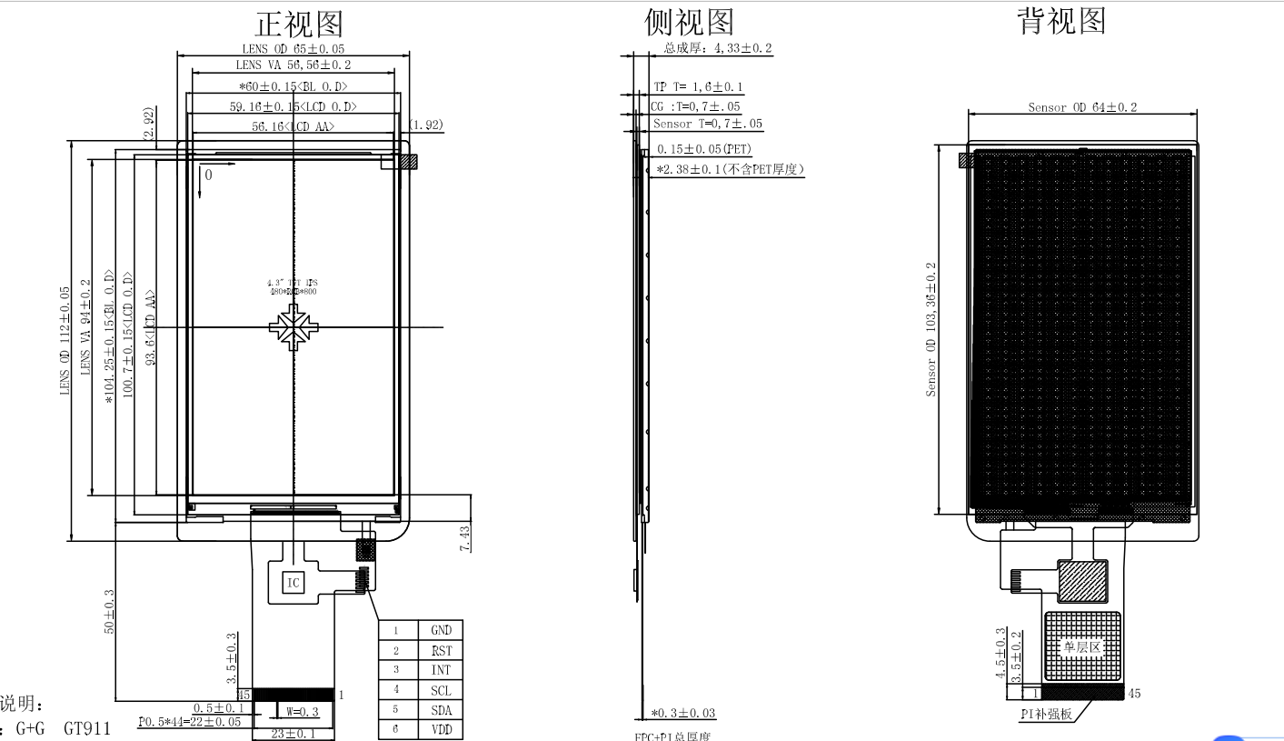 4.3寸豎屏480*800帶多點電容觸摸屏GT911