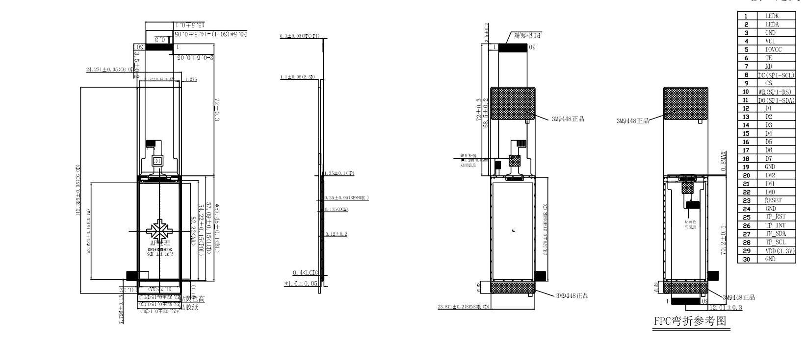 產品簡介:該產品是一款2.3長條屏帶觸摸屏,顯示屏兼容SPI/MCU/QSPI接口,通過IM口可以選擇接口,30PIN標準插接。分辨率200*480,帶單點觸摸屏。