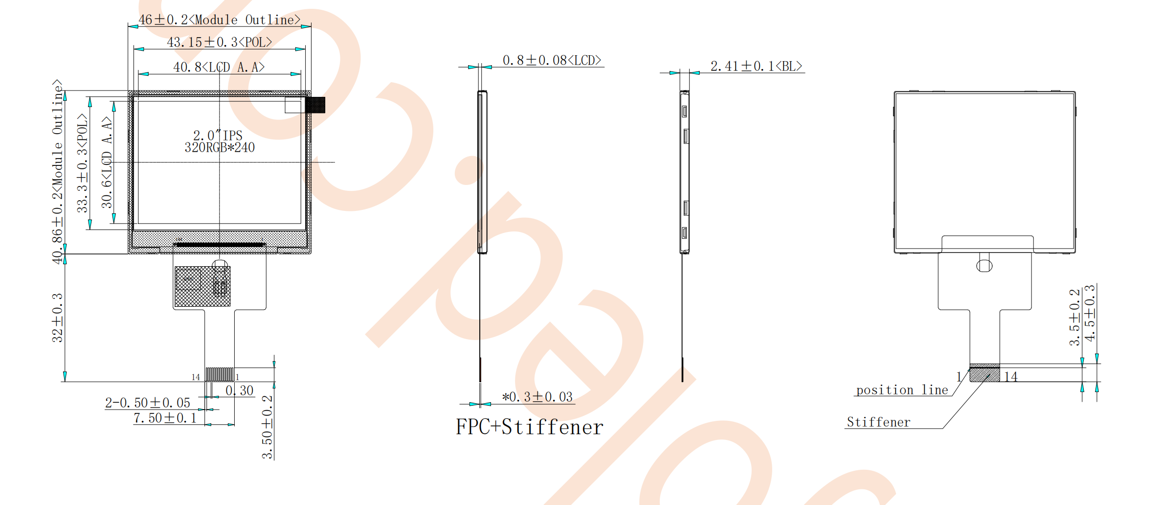 產品簡介:HJ2002-09是一款2.0寸橫屏TFT屏,SPI接口,支持3/4線,320*240分辨率,采用ILI9342C的IC,適用的溫度比較廣,-30到85的工作溫度。2.0寸 TFT LCD 橫屏可應用于工業設備、血氧儀、手持檢測儀器、美容設備、智能家居、消費電子等產品上。