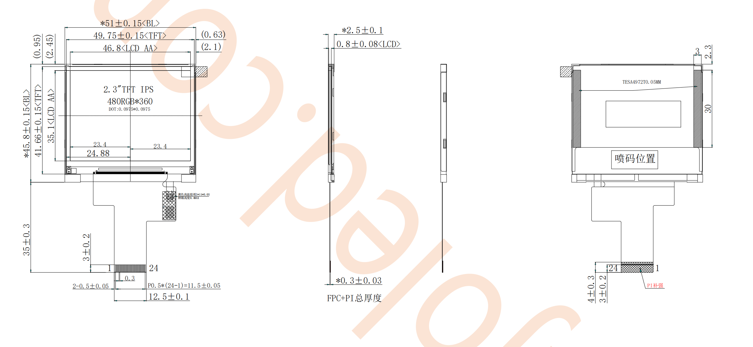2.3寸TFT橫屏 480*360高分辨率MIPI接口