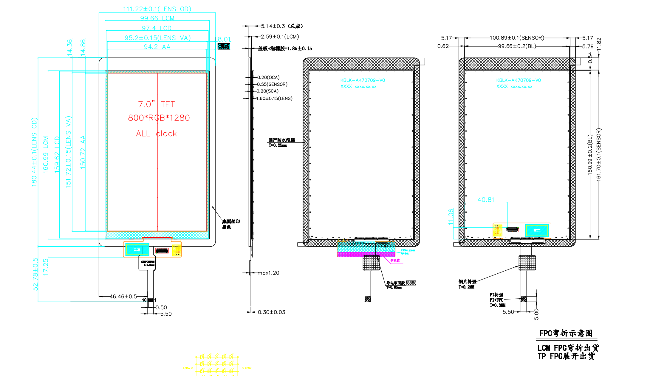 7.0寸IPS豎屏800*1280分辨率MIPI接口帶多點(diǎn)觸摸屏