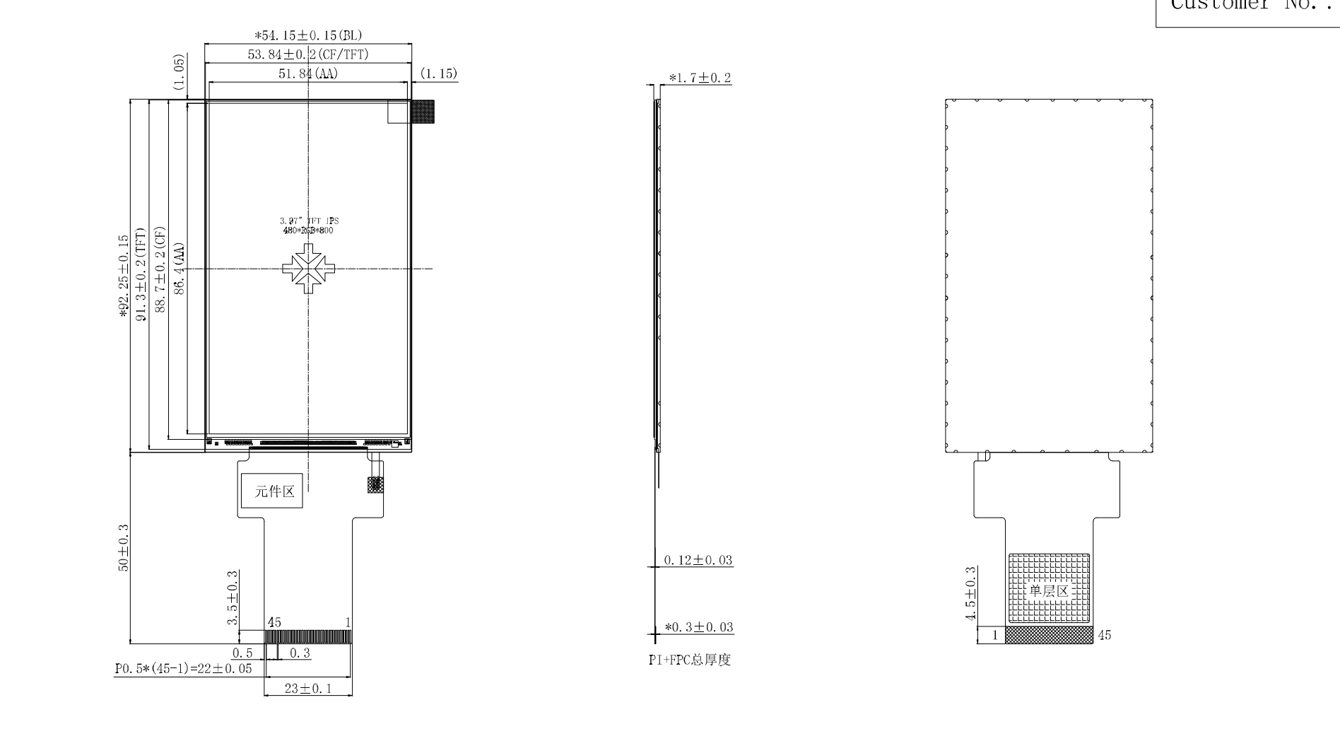 3.97寸IPS液晶屏incell分辨率480*800支持8/16bit MCU/RGB帶觸摸屏